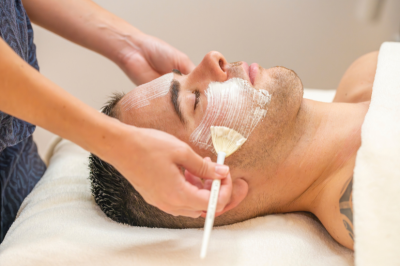 The Men's Facial enhances the skin's natural barrier function while combating signs of aging, pigmentation issues, and puffiness under the eyes.